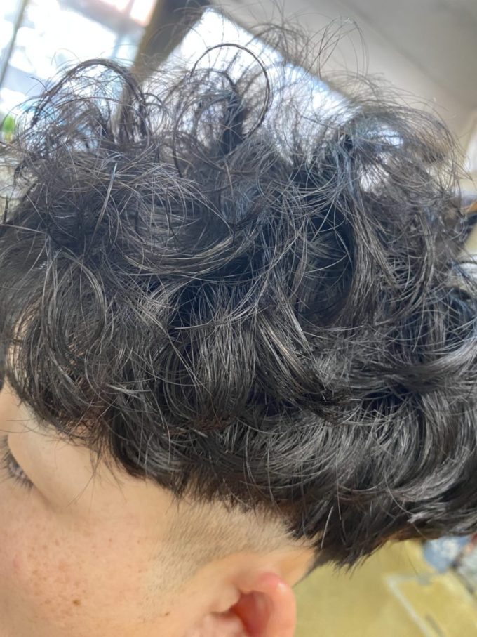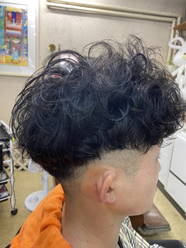 本日のオーダーは、ゆるふわパーマにローフェードの組み合わせ。